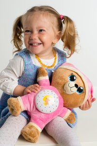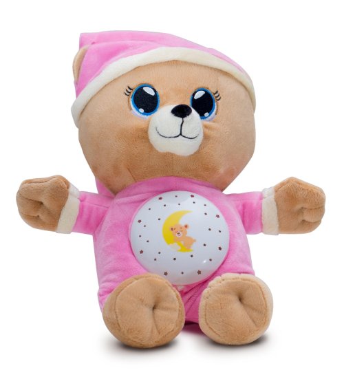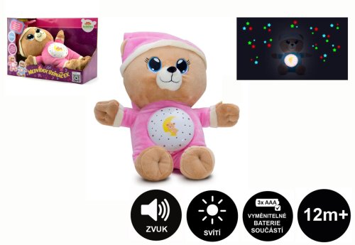 Každé malé dítě má svého mazlíčka na usínání, ke kterému se rádo tulí a cítí pocit bezpěčí. Medvídek Usínáček je k tomu jako stvořený. Stačí zmáčknout jeho kouzelné bříško a z pokojíčku je rázem říše snů. Medvídek Usínáček promítá na strop barevnou hvězdnou oblohu a hraje 4 uklidňující ukolébavky. Je heboučký, měkoučký, láká k mazlení. S Usínáčkem děti snadno usínají a mají klidnou celou noc. Velikost medvídka: 32 cm Velikost krabice: 36 x 25,5 x 16 cm Vhodný od 12 měsíců
