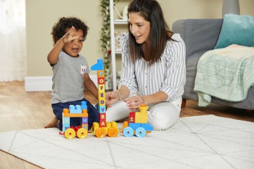 Všichni na palubu písmenkového vláčku! Vaše děťátko se cobydup naučí abecedu s tímto hravým, skládacím vláčkem a kostkami ozdobenými písmeny od A až do Z! Nejprve spoj dohromady tři základny s kolečky a na ně postav písmenkové kostky tak, aby sestavily abecedu nebo dokonce celá slova. Vaše děťátko se naučí písmenka, zatímco se bude prohánět s vláčkem okolo. Nebo použij kostky a speciální tvary k postavení stanice, která bude další zastávkou vašeho písmenkového dobrodružství! Vhodně pro děti ve věku 1 až 5 let.