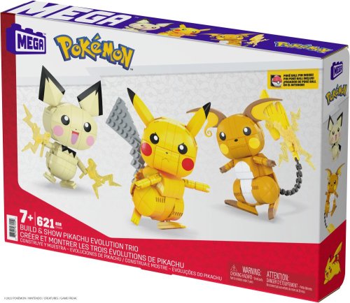 Připrav se na bitvu se stavebnicí MEGA™ Construx Postav a vystav si Pikachu a jeho vývojové trio. Tato stavebnice obsahuje kompletní evoluce Pichu, včetně Pikachu a Raichu, z nichž každý má kloubové končetiny a je vybaven vlastní speciální silou. Speciální dílky, které zapadají do Pichuových rukou, představují elektrickou sílu, zatímco Pikachu a Raichu jsou vybaveni vlastními mocnými pohyby. To vše dohromady vytváří neuvěřitelně věrohodné stavební zážitky. Ideální pro stavitele od 6 let.