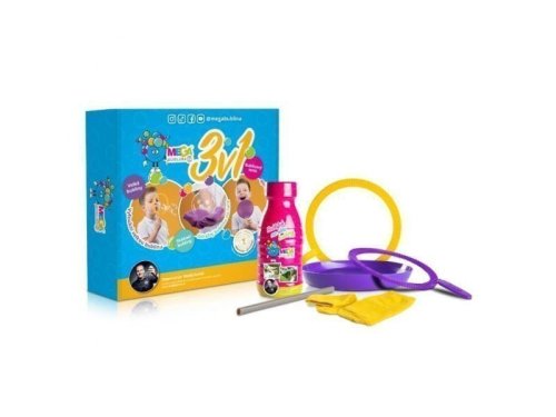 Vyfoukni velkou bublinu, odrážej bublinu na ruce, zahraj si bublinový tenis! Luxusní dárková sada s tím nejlepším bublifukem! Megabublina 3V1 = Velké bubliny, Skákací bubliny, Bublinový tenisSada obsahuje: Bublifuk Megabublina 250 ml - bublifuk s jedinečnou a originální recepturou, 2 x kroužek na foukání velkých bublin, 2 x látkový potah, Miska na bublifuk, Trubička na menší bubliny, Vyfoukni velkou bublinu, odrážej bublinu na ruce, zahraj si bublinový tenis! Megabublina je na trhu již od roku 2011, s bublinami máme 4 zápisy v Guinnesově knize rekordů, v roce 2018 jsme získali krásné 3. místo v prestižní soutěži Hračka roku. Garantem značky je profesionální bublinář Matěj Kodeš, držitel mnoha světových rekordů s mýdlovými bublinami. Použití: Po otevření foukejte bubliny, neřeďte. Používejte s náčiním, které je součástí balení.Velké bubliny – Nalijte kapalinu do misky. Plastový kroužek namočte do bublinové kapaliny. Bubliny tvořte máváním či foukáním.Skákací bubliny – Natáhněte si látku na ruce jako rukavičky. Otevřete lahvičku s bublifukem a brčko, které je součástí setu, namočte do kapaliny. Vytáhněte brčko z láhve a držte ho svisle dolů, jemně nafoukněte malou bublinu. Letící bublinu začněte odrážet. Zkoušejte triky s několika bublinami najednou.Bublinový tenis – Látkový potah natáhněte na plastové kroužky – rakety na bublinový tenis jsou připraveny. Otevřete lahvičku s bublifukem a brčko, které je součástí setu, namočte do kapaliny. Vytáhněte brčko z láhve a držte ho svisle dolů, jemně nafoukněte malou bublinu. Letící bublinu začněte odrážet připravenými raketami. Pozvěte kamarády na bublinový turnaj! Odrážejte, pinkejte, bavte se!