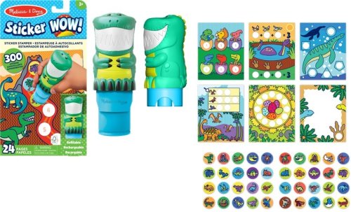 Děti milují samolepky a milují s nimi zdobit všechny své oblíbené věci. Rodiče jsou ale z odstraňování samolepek a čištění lepkavých zbytků méně nadšeni. Se samolepkami Sticker WOW od Melissa & Doug je láska k samolepkám nasměrována tím správným směrem – oprava chyby je snadná a nezanechává žádné stopy. Razítkovací pero ve tvaru cool dinosaura obsahuje 300 samolepek s různými motivy, které mohou děti jednoduše otiskovat do stránek knížky s aktivitami – buď podle zadání, nebo volně podle vlastní fantazie. Samolepky lze samozřejmě použít i k ozdobení dopisů, pozvánek a dalších výtvorů. Díky cílenému lepení si děti od 3 let procvičují koordinaci oka a ruky i jemnou motoriku. Knížka s aktivitami obsahuje 24 stránek s úkoly na počítání, přiřazování a hledání, při kterých děti samolepky umisťují. Samolepky lze snadno sloupnout a znovu použít – bez zbytků lepidla, což dělá z této sady ideální zábavu na cesty. Pro razítkovací pera Sticker WOW jsou samostatně dostupné i různé doplňovací sady.
