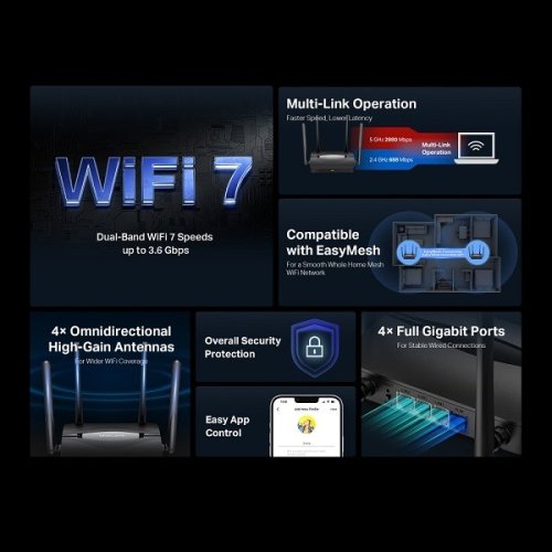 • Dvoupásmový Wi-Fi 7 router BE3600 MR25BE