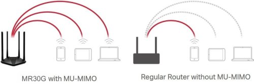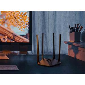 Dvoupásmový bezdrátový Wi-Fi router pracující na frekvencích 2,4 a 5 GHz standardu 802.11a/b/g/n/ac. Čtyři fixní externí antény poskytují stabilní bezdrátové připojení a optimální pokrytí. V pásmu 2,4 GHz dosahuje přenosových rychlostí až 300 Mbit/s a v pásmu 5 GHz až 867 Mbit/s. Na zadní straně disponuje dvěma RJ-45 gigabit LAN porty a jedním RJ-45 gigabit WAN portem.