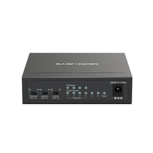 2× Uplink porty: MS106P poskytuje 2× uplink porty při zapnutí režimu izolace. Jeden pro připojení k internetu a jeden pro připojení k NVR.
