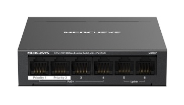 6 portů: 6× 10/100 Mbps RJ45 portů se 4 porty PoE+.