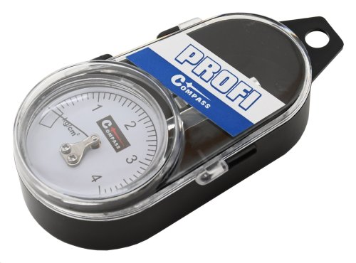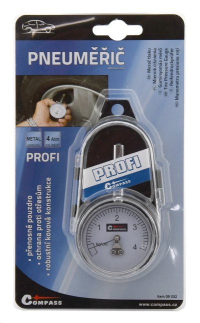 Compass PROFI je profesionální celokovový měřič tlaku v pneumatikách. Tělo měřiče je opatřeno tlačítkem pro vynulování po naměření hodnot. Zároveň jej lze použít pro snížení tlaku v pneumatice pozvolným stisknutím.