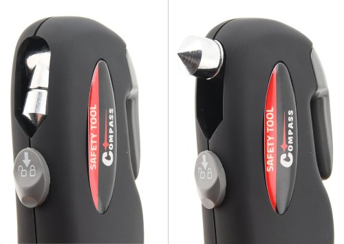 Tělo měřiče je ergonomicky tvarované pro pevný a pohodlný úchop, takže využití všech bezpečnostní doplňků je maximálně efektivní. Měřič Compass SAFETY TOOL je vybaven vystřelovacím kladívkem na rozbití skla, krytým nožem pro snadné přeříznutí bezpečnostního pásu, LED svítilnou s bílým světlem a svítilnou s červeným světlem.