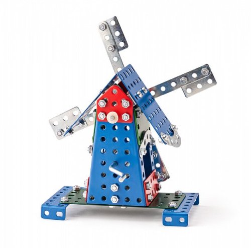Klasická jednovrstvá stavebnice Merkur 19 – Mlýn. Stavebnice obsahuje součástky potřebné pro stavbu různých modelů. Součástí stavebnice je návodová knížka. Tato jedinečná sada je ideálním nástrojem pro rozvoj technických dovedností a představivosti dětí. Stavebnice obsahuje kvalitní kovové díly, které se snadno spojují šroubky, což podporuje rozvoj jemné motoriky, logického myšlení a soustředění. Počet dílků: 181. Úroveň Merkur obtížnosti: 3. Barvy, velikost a vzhled výrobku se mohou lišit oproti uvedeným fotografiím. Baleno v krabičce. Rozměry balení: 18 x 26 x 5 cm. Nevhodné pro děti mladší 3 let. Věk: 5+