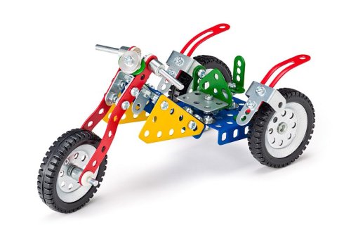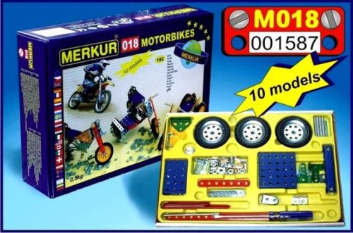 Klasická jednovrstvá stavebnice Merkur 18 – motocykly. Stavebnice obsahuje součástky potřebné pro stavbu modelů motocyklů. Součástí stavebnice je návodová knížka s návodem na stavbu 10 různých modelů. Tato jedinečná sada je ideálním nástrojem pro rozvoj technických dovedností a představivosti dětí. Stavebnice obsahuje kvalitní kovové díly, které se snadno spojují šroubky, což podporuje rozvoj jemné motoriky, logického myšlení a soustředění. Počet dílků: 174. Úroveň Merkur obtížnosti: 3. Barvy, velikost a vzhled výrobku se mohou lišit oproti uvedeným fotografiím. Baleno v krabičce. Rozměry balení: 18 x 26 x 5,3 cm. Nevhodné pro děti mladší 3 let. Věk: 5+