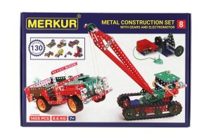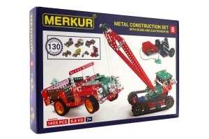 Velká pětivrstvá klasická stavebnice. Vlajková loď stavebnic MERKUR - největší a nejlepší. Stavebnice obsahuje 153 druhů součástek - všechny druhy, které jsou obsaženy v menších stavebnicích včetně pásů, traktorových kol, ozubených a převodových kol, motorku, dlouhých úhelníků, pásků atd. Ze stavebnice lze také sestavit modely terénních vozidel. Součástí stavebnice je velká návodová knížka s návodem na stavbu 130 různých modelů. Ze stavebnice je možné sestavit velké stroje a vozidla, které je možné pomocí převodů a motorku rozpohybovat. Mladý konstruktér má velké množství součástek, aby mohl postavit cokoliv dle vlastní fantazie. Rozměr krabice: 54 x 36,5 x 8,5 cm Vhodné od 7 let