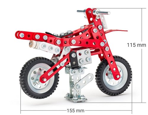 Ponořte se do světa kreativity a zábavy se stavebnicí Dirtbike od společnosti Merkur. Tato jedinečná sada je ideálním nástrojem pro rozvoj technických dovedností a představivosti dětí. Díky kovovým dílkům si malí stavitelé mohou postavit Dirtbike motorku. Stavebnice obsahuje kvalitní kovové díly, které se snadno spojují šroubky, což podporuje rozvoj jemné motoriky, logického myšlení a soustředění. Sada obsahuje: 191 dílků. Úroveň Merkur obtížnosti: 3. Baleno v krabičce. Rozměry Dirtbike: 11,5 x 7,5 x 15,5 cm. Rozměry balení: 18 x 26 x 5 cm. Věk: 5+
