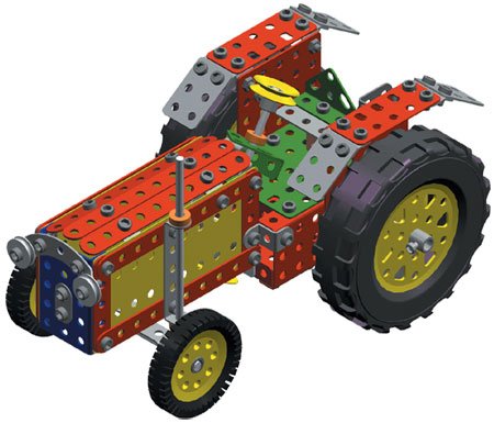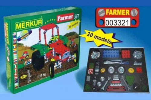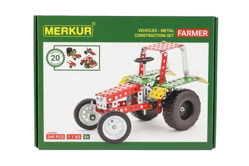 Ponořte se na chvíli do krás českého venkova, vezměte na sebe povinnosti farmářů a pracovníků v zemědělství, to vše nabízí speciální stavebnice Merkur Farmer Set. Postavíte si traktory s vleky, sekačku na trávu či dokonce kombajn. Tato jedinečná sada je ideálním nástrojem pro rozvoj technických dovedností a představivosti dětí. Stavebnice obsahuje kvalitní kovové díly, které se snadno spojují šroubky, což podporuje rozvoj jemné motoriky, logického myšlení a soustředění. Součástí stavebnice je velká návodová knížka s návodem na stavbu 20 různých venkovských modelů, zapojit však můžete i vlastní fantazii a postavit si takové stroje, jaké vás napadnou. Počet dílků: 349. Rozměry balení: 27 x 36 x 5,5 cm. Nevhodné pro děti mladší 3 let. Věk: 5+
