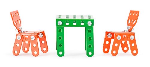 Ponořte se do světa kreativity a zábavy se stavebnicí kovového nábytku do domečku pro panenky od společnosti Merkur. Tato jedinečná sada je ideálním nástrojem pro rozvoj technických dovedností a představivosti dětí. Díky kovovým dílkům si malí stavitelé mohou postavit vlastní nábytek do domečku pro panenky a rozmístit si ho podle svých představ. Stavebnice obsahuje kvalitní kovové díly, které se snadno spojují šroubky, což podporuje rozvoj jemné motoriky, logického myšlení a soustředění. Děti se naučí sestavovat jednotlivé díly tak, aby vytvořily jednotlivé kusy nábytku do domečku, který pak mohou využít při hře se svými panenkami. Po sestavení získáte: 2 x postel, 1 x pohovku, 1 x komodu, 1 x křeslo, 1 x konferenční stolek, 1 x jídelní stůl, 2 x židli a 1 x kolébku. Stavebnice je kompatibilní s domečkem pro panenky 48001. Sada obsahuje: 219 dílů. Úroveň Merkur obtížnosti: 3. Baleno v krabičce. Rozměry balení: 18 x 26 x 5 cm. Věk: 5+