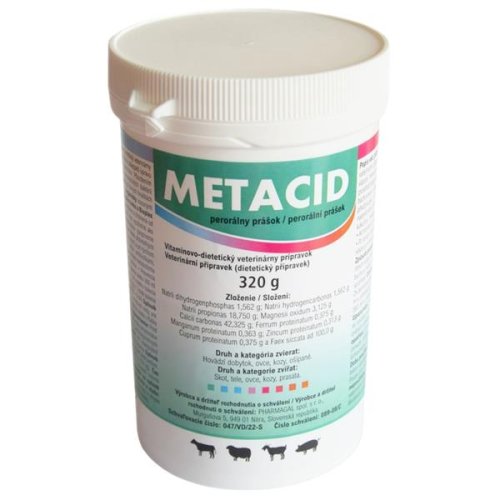 Kombinovaný přípravek určený k úpravě kyselého prostředí bachoru souvisejícího s metabolickou acidózou a obnově porušené bachorové a střevní mikroflóry. Světlehnědý prášek. Užití: Dysfunkce předžaludků (přeplnění a hyperacidita bachoru). Doplněk krmiva při nadměrném přívodu lehce stravitelných glycidů (cukrové řepy, obilních šrotů, kukuřice, melasy, brambor apod.) a při rychlém přechodu na tato krmiva. Alimentární intoxikace. Po léčbě antibiotiky, sulfonamidy, desinficiencemi. Po terapii antiparazitiky. Při poruchách metabolismu vápníku a nedostatku některých minerálních látek a stopových prvků. Prevence silných průjmů. Cílový druh: Hovězí dobytek, telata, ovce, kozy, prasata. Složení: Natrii dihydrogenphosphas 1,562 g, Natrii hydrogencarbonas 1,562 g, Natrii propionas 18,750 g, Magnesii oxidum 3,125 g, Calcii carbonas 42,325 g, Ferrum proteinatum 0,375 g, Manganum proteinatum 0,363 g, Zincum proteinatum 0,313 g, Cuprum proteinatum 0,375 g a Faex siccata ad 100,0 g.
