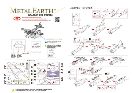 Jednotlivé díly vyjměte z kovových plátků, v případě potřeby použijte malé štípací nůžky (nejsou součástí). Dílky se spojují k sobě pomocí zámků tvořených úchytem (zobáčkem) a otvorem. Zobáček ohněte pomocí malých tenkých kleští (nejsou součástí) a postupně spojte všechny zámky až vznikne velmi realistický mistrovský kousek!
