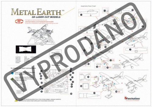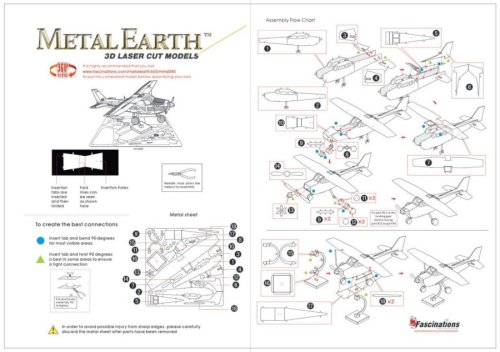 Jednotlivé díly vyjměte z kovových plátků, v případě potřeby použijte malé štípací nůžky (nejsou součástí). Dílky se spojují k sobě pomocí zámků tvořených úchytem (zobáčkem) a otvorem. Zobáček ohněte pomocí malých tenkých kleští (nejsou součástí) a postupně spojte všechny zámky až vznikne velmi realistický mistrovský kousek!