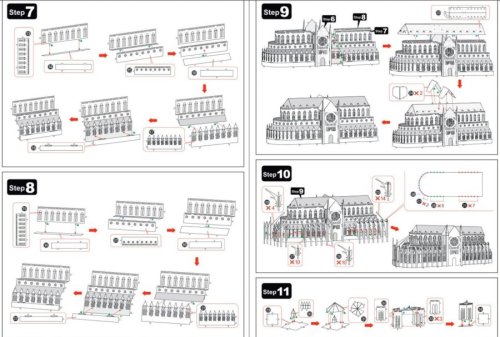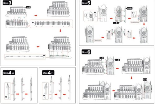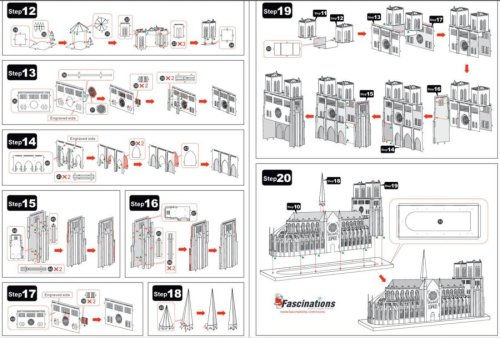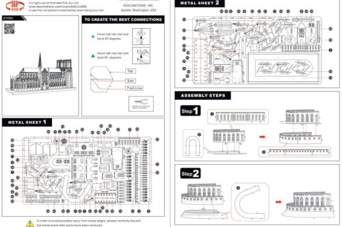 Jednotlivé díly vyjměte z kovových plátků, v případě potřeby použijte malé štípací nůžky (nejsou součástí). Dílky se spojují k sobě pomocí zámků tvořených úchytem (zobáčkem) a otvorem. Zobáček ohněte pomocí malých tenkých kleští (nejsou součástí) a postupně spojte všechny zámky až vznikne velmi realistický mistrovský kousek!