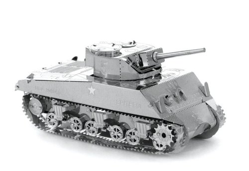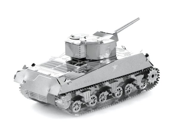 M4 Sherman (oficiální označení americké armády Medium Tank, M4) byl nejznámější americký střední tank ve druhé světové válce a krátce po ní. ojmenován byl po americkém generálu Shermanovi. Byl vyráběn v obrovských počtech. Slabinami prvních Shermanů byly nepříliš výkonný kanón a poddimenzovaný pancíř. Více na Wikipedii Rozměr složeného puzzle cca 7,4 x 3,5 x 3,4 cm