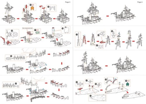 Jednotlivé díly vyjměte z kovových plátků, v případě potřeby použijte malé štípací nůžky (nejsou součástí). Dílky se spojují k sobě pomocí zámků tvořených úchytem (zobáčkem) a otvorem. Zobáček ohněte pomocí malých tenkých kleští (nejsou součástí) a postupně spojte všechny zámky až vznikne velmi realistický mistrovský kousek!