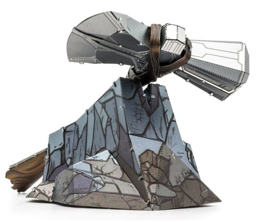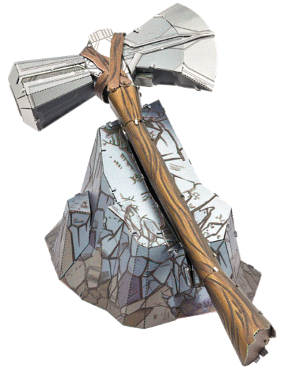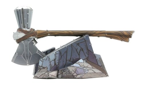 Vzrušující výzva, zážitek při skládání a oslnivý výsledek – to jsou modely METAL EARTH! Model z kolekce Avengers pro všechny fanoušky superhrdinů! Stavba 3D puzzle METAL EARTH vyžaduje trpělivost a šikovné ruce. Výsledek práce však plně vyváží vynaložené úsilí! Miniaturní repliky jsou obzvláště působivou a poutavou dekorací nejen doma, ale také v kanceláři či ve škole. Z čtvercových plátků oceli (11 x 11 cm) Vám pod rukama vyroste detailně propracovaný, fascinující model. Autentický vzhled 3D puzzle METAL EARTH je dosažen díky detailnímu laserovému gravírování . Balení obsahuje 2 ocelové plátky s dílky a návod na složení. Nářadí není součástí balení. PRACOVNÍ POSTUP: Jednotlivé díly vyjměte z kovových plátků, v případě potřeby použijte malé štípací nůžky (nejsou součástí). Dílky se spojují k sobě pomocí zámků tvořených úchytem (zobáčkem) a otvorem. Zobáček ohněte pomocí malých tenkých kleští (nejsou součástí) a postupně spojte všechny zámky až vznikne velmi realistický mistrovský kousek! Doporučený věk: od 14 let. Rozměr složeného puzzle cca 12,5 x 5,8 x 1,5 cm (sekera), 7,6 x 5 x 3,6 cm (podstavec)