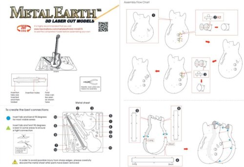 Jednotlivé díly vyjměte z kovových plátků, v případě potřeby použijte malé štípací nůžky (nejsou součástí). Dílky se spojují k sobě pomocí zámků tvořených úchytem (zobáčkem) a otvorem. Zobáček ohněte pomocí malých tenkých kleští (nejsou součástí) a postupně spojte všechny zámky až vznikne velmi realistický mistrovský kousek!