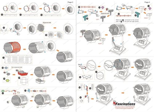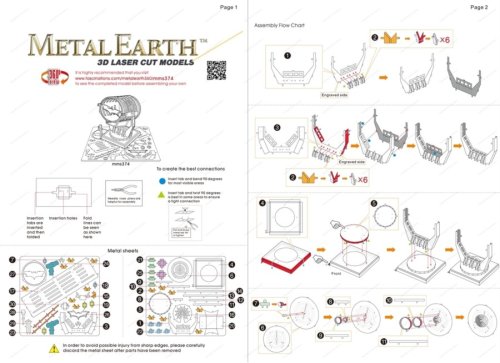 Jednotlivé díly vyjměte z kovových plátků, v případě potřeby použijte malé štípací nůžky (nejsou součástí). Dílky se spojují k sobě pomocí zámků tvořených úchytem (zobáčkem) a otvorem. Zobáček ohněte pomocí malých tenkých kleští (nejsou součástí) a postupně spojte všechny zámky až vznikne velmi realistický mistrovský kousek!