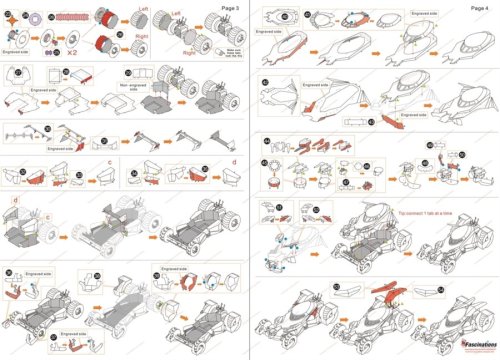 Jednotlivé díly vyjměte z kovových plátků, v případě potřeby použijte malé štípací nůžky (nejsou součástí). Dílky se spojují k sobě pomocí zámků tvořených úchytem (zobáčkem) a otvorem. Zobáček ohněte pomocí malých tenkých kleští (nejsou součástí) a postupně spojte všechny zámky až vznikne velmi realistický mistrovský kousek!