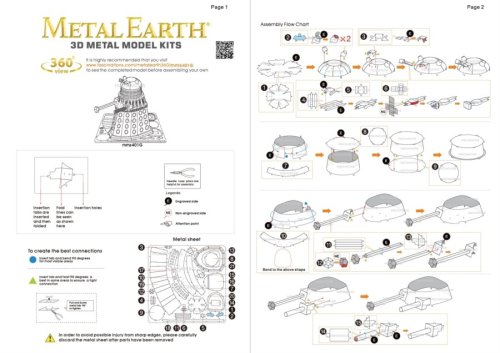 Jednotlivé díly vyjměte z kovových plátků, v případě potřeby použijte malé štípací nůžky (nejsou součástí). Dílky se spojují k sobě pomocí zámků tvořených úchytem (zobáčkem) a otvorem. Zobáček ohněte pomocí malých tenkých kleští (nejsou součástí) a postupně spojte všechny zámky až vznikne velmi realistický mistrovský kousek!
