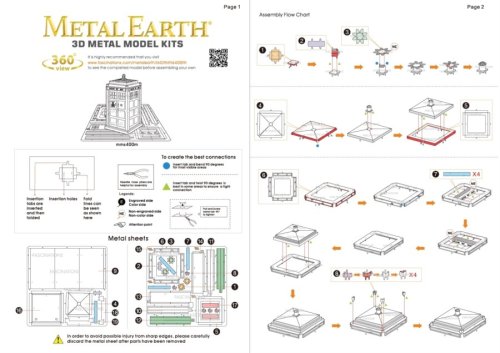 Vzrušující výzva, zážitek při skládání a oslnivý výsledek – to jsou modely METAL EARTH! Model z řady Doctor Who (Pán času) pro všechny fanoušky tohoto britského fenoménu! Stavba 3D puzzle METAL EARTH vyžaduje trpělivost a šikovné ruce. Výsledek práce však plně vyváží vynaložené úsilí! Miniaturní repliky jsou obzvláště působivou a poutavou dekorací nejen doma, ale také v kanceláři či ve škole. Z čtvercových plátků oceli (11 x 11 cm) s částmi světových monumentů, slavných dopravních prostředků, hudebních nástrojů či zvířat Vám pod rukama vyrostou detailně propracované, fascinující modely. Autentický vzhled 3D puzzle METAL EARTH je dosažen díky detailnímu laserovému gravírování . Balení obsahuje 2 ocelové plátky s dílky a návod na složení. Nářadí není součástí balení. PRACOVNÍ POSTUP: Jednotlivé díly vyjměte z kovových plátků, v případě potřeby použijte malé štípací nůžky (nejsou součástí). Dílky se spojují k sobě pomocí zámků tvořených úchytem (zobáčkem) a otvorem. Zobáček ohněte pomocí malých tenkých kleští (nejsou součástí) a postupně spojte všechny zámky až vznikne velmi realistický mistrovský kousek! Doporučený věk: od 14 let. Rozměr složeného puzzle cca 8,2 x 4 x 4 cm