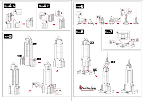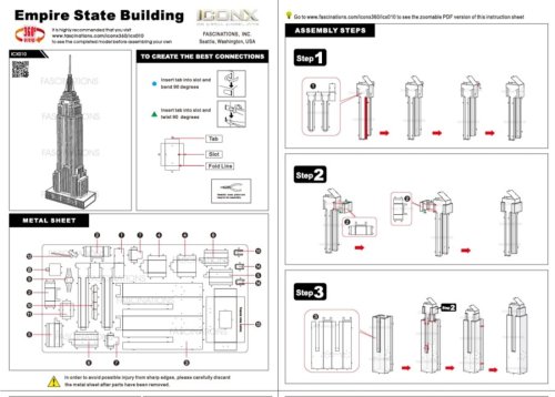 Jednotlivé díly vyjměte z kovových plátků, v případě potřeby použijte malé štípací nůžky (nejsou součástí). Dílky se spojují k sobě pomocí zámků tvořených úchytem (zobáčkem) a otvorem. Zobáček ohněte pomocí malých tenkých kleští (nejsou součástí) a postupně spojte všechny zámky až vznikne velmi realistický mistrovský kousek!