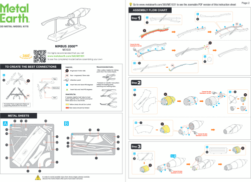 Sada pro vytvoření fascinujícího kovového 3D modelu . Stavba puzzle METAL EARTH vyžaduje trpělivost a šikovné ruce. Výsledek práce však plně vyváží vynaložené úsilí. Miniaturní repliky jsou působivou a poutavou dekorací. Z čtvercových plátků oceli Vám pod rukama vyrostou detailně propracované, fascinující modely. Autentický vzhled 3D puzzle METAL EARTH je dosažen díky detailnímu laserovému gravírování . Nářadí není součástí balení. PRACOVNÍ POSTUP: Jednotlivé díly vyjměte z kovových plátků, v případě potřeby použijte malé štípací nůžky (nejsou součástí). Dílky se spojují k sobě pomocí zámků tvořených úchytem (zobáčkem) a otvorem. Zobáček ohněte pomocí malých tenkých kleští (nejsou součástí) a postupně spojte všechny zámky až vznikne velmi realistický mistrovský kousek!
