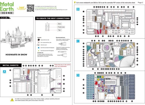 Vzrušující výzva, zážitek při skládání a oslnivý výsledek – to jsou modely METAL EARTH! Model z prémiové řady Harry Potter ICONX v exkluzivním dárkovém balení Vás okouzlí ještě dokonalejším zpracováním detailů! Stavba 3D puzzle METAL EARTH ICONX vyžaduje trpělivost a šikovné ruce. Výsledek práce však plně vyváží vynaložené úsilí! Miniaturní repliky jsou obzvláště působivou a poutavou dekorací nejen doma, ale také v kanceláři či ve škole. Z obdélníkových plátků oceli s částmi světových monumentů, slavných dopravních prostředků, hudebních nástrojů či zvířat Vám pod rukama vyrostou detailně propracované, fascinující modely. Autentický vzhled 3D puzzle METAL EARTH ICONX je dosažen díky detailnímu laserovému gravírování . Balení obsahuje 4 velké ocelové plátky předraženými dílky, pinzetu a návod na složení. Nářadí - kleště nejsou součástí balení. PRACOVNÍ POSTUP: Jednotlivé díly vyjměte z kovových plátků, v případě potřeby použijte malé štípací nůžky (nejsou součástí). Dílky se spojují k sobě pomocí zámků tvořených úchytem (zobáčkem) a otvorem. Zobáček ohněte pomocí malých tenkých kleští (nejsou součástí) a postupně spojte všechny zámky až vznikne velmi realistický mistrovský kousek! Doporučený věk: od 14 let. Rozměr složeného puzzle cca 16,89 x 12,9 x 11,43 cm