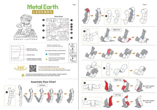 Jednotlivé díly vyjměte z kovových plátků, v případě potřeby použijte malé štípací nůžky (nejsou součástí). Dílky se spojují k sobě pomocí zámků tvořených úchytem (zobáčkem) a otvorem. Zobáček ohněte pomocí malých tenkých kleští (nejsou součástí) a postupně spojte všechny zámky až vznikne velmi realistický mistrovský kousek!