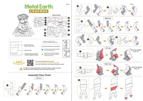 Jednotlivé díly vyjměte z kovových plátků, v případě potřeby použijte malé štípací nůžky (nejsou součástí). Dílky se spojují k sobě pomocí zámků tvořených úchytem (zobáčkem) a otvorem. Zobáček ohněte pomocí malých tenkých kleští (nejsou součástí) a postupně spojte všechny zámky až vznikne velmi realistický mistrovský kousek!