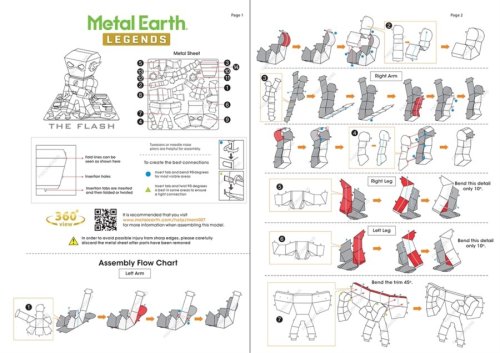 Jednotlivé díly vyjměte z kovových plátků, v případě potřeby použijte malé štípací nůžky (nejsou součástí). Dílky se spojují k sobě pomocí zámků tvořených úchytem (zobáčkem) a otvorem. Zobáček ohněte pomocí malých tenkých kleští (nejsou součástí) a postupně spojte všechny zámky až vznikne velmi realistický mistrovský kousek!