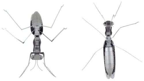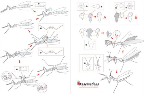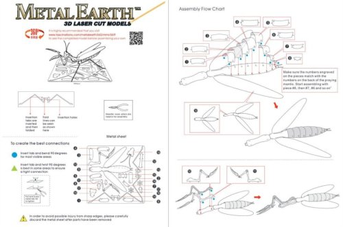 Jednotlivé díly vyjměte z kovových plátků, v případě potřeby použijte malé štípací nůžky (nejsou součástí). Dílky se spojují k sobě pomocí zámků tvořených úchytem (zobáčkem) a otvorem. Zobáček ohněte pomocí malých tenkých kleští (nejsou součástí) a postupně spojte všechny zámky až vznikne velmi realistický mistrovský kousek!