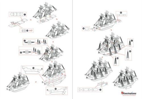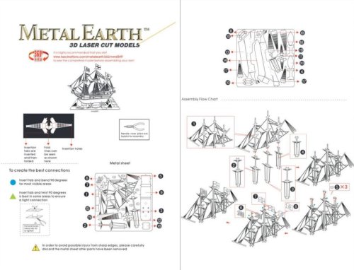 Jednotlivé díly vyjměte z kovových plátků, v případě potřeby použijte malé štípací nůžky (nejsou součástí). Dílky se spojují k sobě pomocí zámků tvořených úchytem (zobáčkem) a otvorem. Zobáček ohněte pomocí malých tenkých kleští (nejsou součástí) a postupně spojte všechny zámky až vznikne velmi realistický mistrovský kousek!