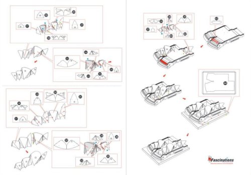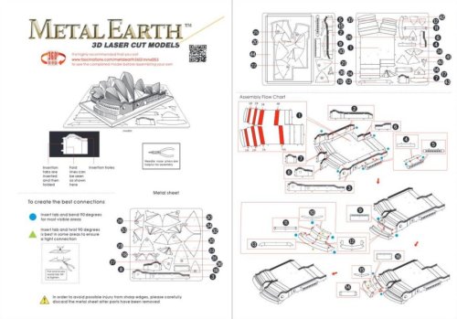 Jednotlivé díly vyjměte z kovových plátků, v případě potřeby použijte malé štípací nůžky (nejsou součástí). Dílky se spojují k sobě pomocí zámků tvořených úchytem (zobáčkem) a otvorem. Zobáček ohněte pomocí malých tenkých kleští (nejsou součástí) a postupně spojte všechny zámky až vznikne velmi realistický mistrovský kousek!