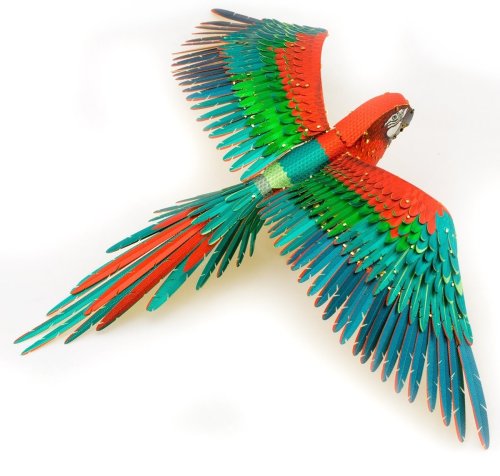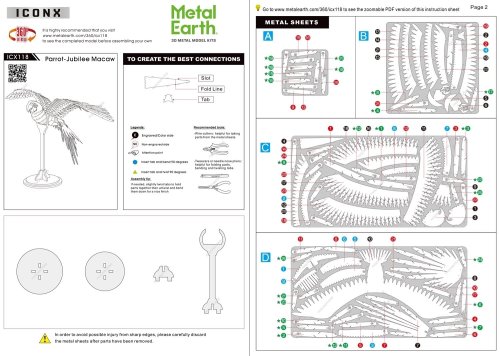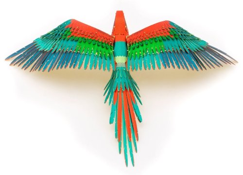 Jednotlivé díly vyjměte z kovových plátků, v případě potřeby použijte malé štípací nůžky (nejsou součástí). Dílky se spojují k sobě pomocí zámků tvořených úchytem (zobáčkem) a otvorem. Zobáček ohněte pomocí malých tenkých kleští (nejsou součástí) a postupně spojte všechny zámky až vznikne velmi realistický mistrovský kousek!