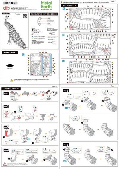 Jednotlivé díly vyjměte z kovových plátků, v případě potřeby použijte malé štípací nůžky (nejsou součástí). Dílky se spojují k sobě pomocí zámků tvořených úchytem (zobáčkem) a otvorem. Zobáček ohněte pomocí malých tenkých kleští (nejsou součástí) a postupně spojte všechny zámky až vznikne velmi realistický mistrovský kousek!