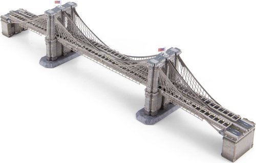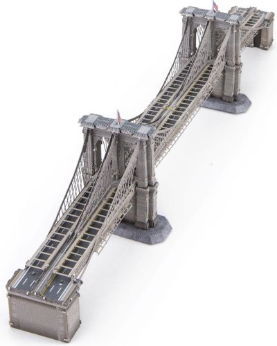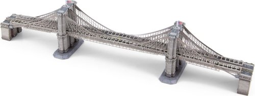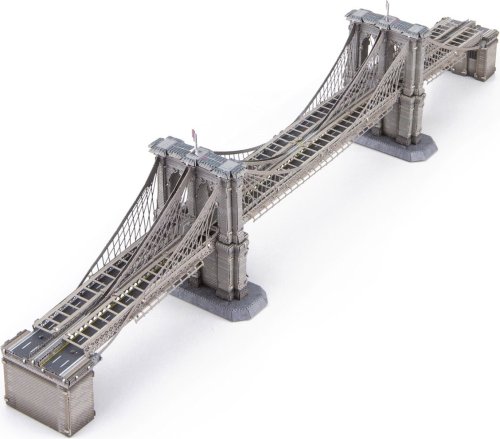 Brooklynský most se nachází v New Yorku a je jedním z nejstarších visutých mostů ve Spojených státech. Byl dokončen v roce 1883 a spojuje čtvrti Manhattan a Brooklyn, překlenující řeku East River. Sada pro vytvoření fascinujícího kovového 3D modelu . Stavba puzzle METAL EARTH vyžaduje trpělivost a šikovné ruce. Výsledek práce však plně vyváží vynaložené úsilí. Miniaturní repliky jsou působivou a poutavou dekorací. Z čtvercových plátků oceli Vám pod rukama vyrostou detailně propracované, fascinující modely. Autentický vzhled 3D puzzle METAL EARTH je dosažen díky detailnímu laserovému gravírování . Nářadí není součástí balení. PRACOVNÍ POSTUP: Jednotlivé díly vyjměte z kovových plátků, v případě potřeby použijte malé štípací nůžky (nejsou součástí). Dílky se spojují k sobě pomocí zámků tvořených úchytem (zobáčkem) a otvorem. Zobáček ohněte pomocí malých tenkých kleští (nejsou součástí) a postupně spojte všechny zámky až vznikne velmi realistický mistrovský kousek! Rozměr složeného puzzle cca 26,6 x 5,7 x 2,2 cm
