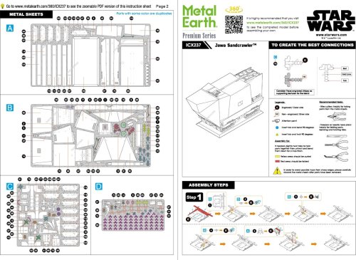 Sada pro vytvoření fascinujícího kovového 3D modelu . Stavba puzzle METAL EARTH vyžaduje trpělivost a šikovné ruce. Výsledek práce však plně vyváží vynaložené úsilí. Miniaturní repliky jsou působivou a poutavou dekorací. Z čtvercových plátků oceli Vám pod rukama vyrostou detailně propracované, fascinující modely. Autentický vzhled 3D puzzle METAL EARTH je dosažen díky detailnímu laserovému gravírování . Nářadí není součástí balení. PRACOVNÍ POSTUP: Jednotlivé díly vyjměte z kovových plátků, v případě potřeby použijte malé štípací nůžky (nejsou součástí). Dílky se spojují k sobě pomocí zámků tvořených úchytem (zobáčkem) a otvorem. Zobáček ohněte pomocí malých tenkých kleští (nejsou součástí) a postupně spojte všechny zámky až vznikne velmi realistický mistrovský kousek!