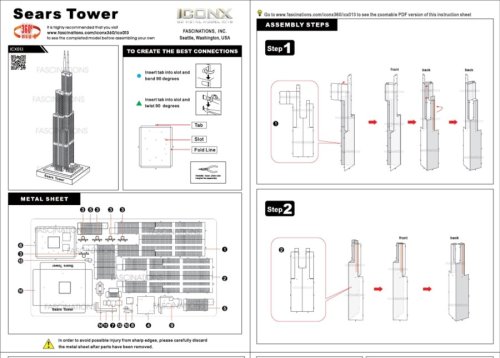 Jednotlivé díly vyjměte z kovových plátků, v případě potřeby použijte malé štípací nůžky (nejsou součástí). Dílky se spojují k sobě pomocí zámků tvořených úchytem (zobáčkem) a otvorem. Zobáček ohněte pomocí malých tenkých kleští (nejsou součástí) a postupně spojte všechny zámky až vznikne velmi realistický mistrovský kousek!