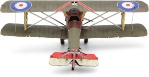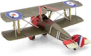 Sopwith Camel byl britský jednomístný dvojplošný stíhací letoun první světové války, který byl nasazen na západní frontě v roce 1917. Díky své výjimečné manévrovatelnosti dosáhl více leteckých vítězství než kterýkoli jiný spojenecký letoun během války. Legendární eso první světové války, Snoopy, také létal na tomto stroji ve svých slavných soubojích s Rudým baronem. Sada pro vytvoření fascinujícího kovového 3D modelu . Stavba puzzle METAL EARTH vyžaduje trpělivost a šikovné ruce. Výsledek práce však plně vyváží vynaložené úsilí. Miniaturní repliky jsou působivou a poutavou dekorací. Z čtvercových plátků oceli Vám pod rukama vyrostou detailně propracované, fascinující modely. Autentický vzhled 3D puzzle METAL EARTH je dosažen díky detailnímu laserovému gravírování . Nářadí není součástí balení. PRACOVNÍ POSTUP: Jednotlivé díly vyjměte z kovových plátků, v případě potřeby použijte malé štípací nůžky (nejsou součástí). Dílky se spojují k sobě pomocí zámků tvořených úchytem (zobáčkem) a otvorem. Zobáček ohněte pomocí malých tenkých kleští (nejsou součástí) a postupně spojte všechny zámky až vznikne velmi realistický mistrovský kousek! Rozměr složeného puzzle cca 11,6 x 7,5 x 4,3 cm