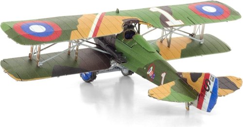SPAD S.XIII byl francouzský jednomístný dvojplošný stíhací letoun z první světové války, který se ukázal jako jeden z nejvýkonnějších stíhačů války. Zároveň patřil k nejvíce vyráběným letounům své doby, s celkovým počtem 8 472 kusů. Na SPADu S.XIII létalo mnoho slavných pilotů první světové války, včetně nejúspěšnějšího amerického esa, kapitána Eddieho Rickenbackera. Sada pro vytvoření fascinujícího kovového 3D modelu . Stavba puzzle METAL EARTH vyžaduje trpělivost a šikovné ruce. Výsledek práce však plně vyváží vynaložené úsilí. Miniaturní repliky jsou působivou a poutavou dekorací. Z čtvercových plátků oceli Vám pod rukama vyrostou detailně propracované, fascinující modely. Autentický vzhled 3D puzzle METAL EARTH je dosažen díky detailnímu laserovému gravírování . Nářadí není součástí balení. PRACOVNÍ POSTUP: Jednotlivé díly vyjměte z kovových plátků, v případě potřeby použijte malé štípací nůžky (nejsou součástí). Dílky se spojují k sobě pomocí zámků tvořených úchytem (zobáčkem) a otvorem. Zobáček ohněte pomocí malých tenkých kleští (nejsou součástí) a postupně spojte všechny zámky až vznikne velmi realistický mistrovský kousek! Rozměr složeného puzzle cca 10,8 x 8,4 x 3,2 cm