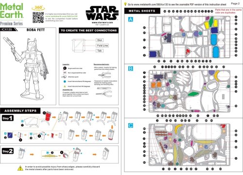 Vzrušující výzva, zážitek při skládání a oslnivý výsledek – to jsou modely METAL EARTH! Model z prémiové řady Star Wars ICONX v exkluzivním dárkovém balení Vás okouzlí ještě dokonalejším zpracováním detailů! Stavba 3D puzzle METAL EARTH ICONX vyžaduje trpělivost a šikovné ruce. Výsledek práce však plně vyváží vynaložené úsilí! Miniaturní repliky jsou obzvláště působivou a poutavou dekorací nejen doma, ale také v kanceláři či ve škole. Z obdélníkových plátků oceli s částmi světových monumentů, slavných dopravních prostředků, hudebních nástrojů či zvířat Vám pod rukama vyrostou detailně propracované, fascinující modely. Autentický vzhled 3D puzzle METAL EARTH ICONX je dosažen díky detailnímu laserovému gravírování . Balení obsahuje 3 ocelové plátky předraženými dílky, pinzetu a návod na složení. Nářadí - kleště nejsou součástí balení. PRACOVNÍ POSTUP: Jednotlivé díly vyjměte z kovových plátků, v případě potřeby použijte malé štípací nůžky (nejsou součástí). Dílky se spojují k sobě pomocí zámků tvořených úchytem (zobáčkem) a otvorem. Zobáček ohněte pomocí malých tenkých kleští (nejsou součástí) a postupně spojte všechny zámky až vznikne velmi realistický mistrovský kousek! Doporučený věk: od 14 let. Rozměr složeného puzzle cca 10,41 x 8,13 x 18,29 cm