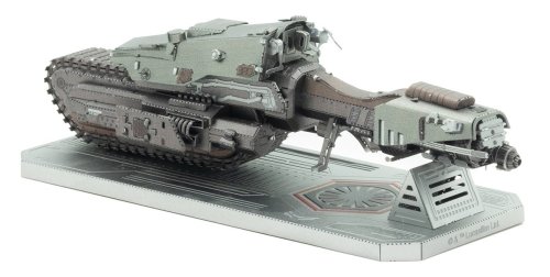 Vzrušující výzva, zážitek při skládání a oslnivý výsledek – to jsou modely METAL EARTH! Model z kolekce Star Wars je ideálním dárkem pro všechny milovníky této vesmírné ságy! Stavba 3D puzzle METAL EARTH vyžaduje trpělivost a šikovné ruce. Výsledek práce však plně vyváží vynaložené úsilí! Miniaturní repliky jsou obzvláště působivou a poutavou dekorací nejen doma, ale také v kanceláři či ve škole. Z čtvercových plátků oceli Vám pod rukama vyroste detailně propracovaný, fascinující model. Autentický vzhled 3D puzzle METAL EARTH je dosažen díky detailnímu laserovému gravírování . Balení obsahuje 1 malý a 2 velké ocelové plátky s dílky a návod na složení. Nářadí není součástí balení. PRACOVNÍ POSTUP: Jednotlivé díly vyjměte z kovových plátků, v případě potřeby použijte malé štípací nůžky (nejsou součástí). Dílky se spojují k sobě pomocí zámků tvořených úchytem (zobáčkem) a otvorem. Zobáček ohněte pomocí malých tenkých kleští (nejsou součástí) a postupně spojte všechny zámky až vznikne velmi realistický mistrovský kousek! Doporučený věk: od 14 let. Rozměr složeného puzzle cca 9,4 x 4,1 x 3,9 cm