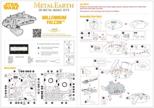 Jednotlivé díly vyjměte z kovových plátků, v případě potřeby použijte malé štípací nůžky (nejsou součástí). Dílky se spojují k sobě pomocí zámků tvořených úchytem (zobáčkem) a otvorem. Zobáček ohněte pomocí malých tenkých kleští (nejsou součástí) a postupně spojte všechny zámky až vznikne velmi realistický mistrovský kousek!