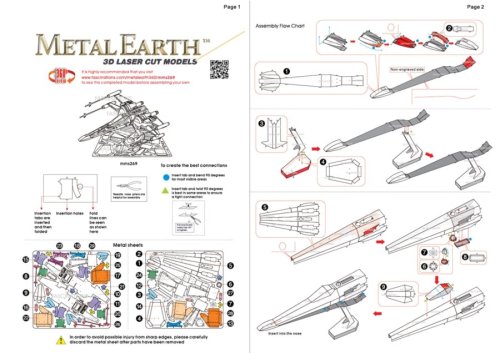 Jednotlivé díly vyjměte z kovových plátků, v případě potřeby použijte malé štípací nůžky (nejsou součástí). Dílky se spojují k sobě pomocí zámků tvořených úchytem (zobáčkem) a otvorem. Zobáček ohněte pomocí malých tenkých kleští (nejsou součástí) a postupně spojte všechny zámky až vznikne velmi realistický mistrovský kousek!