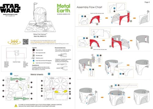 Jednotlivé díly vyjměte z kovových plátků, v případě potřeby použijte malé štípací nůžky (nejsou součástí). Dílky se spojují k sobě pomocí zámků tvořených úchytem (zobáčkem) a otvorem. Zobáček ohněte pomocí malých tenkých kleští (nejsou součástí) a postupně spojte všechny zámky až vznikne velmi realistický mistrovský kousek!